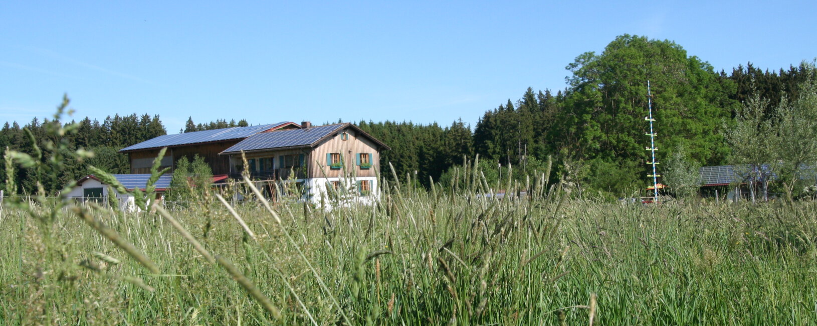 liegt in traumhafte Alleinlage in der Nähe von Friesenried (10 km von Kaufbeuren entfernt) auf einer Hochebene. Von hier aus führen in alle Himmelsrichtungen wunderschöne Reitwege.