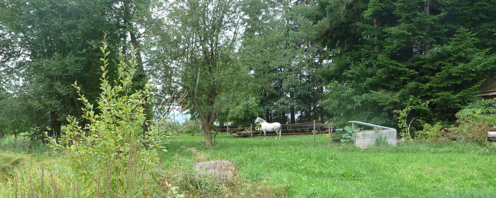 Unsere Wanderreitgäste übernachten in Baumhäusern und spüren so die ganz besondere Energie der Bäume. Draußen nutzen Sie die umweltfreundliche Komposttoilette. Duschmöglichkeiten gibt es unter freiem Himmel wie auch im Holzhaus der Gastgeberin. Die Pferde haben ausreichend Platz auf der abgesteckten Hauswiese oder auf dem Paddock und genießen Bio-Heu - übrigens auch mit Alpenblick.